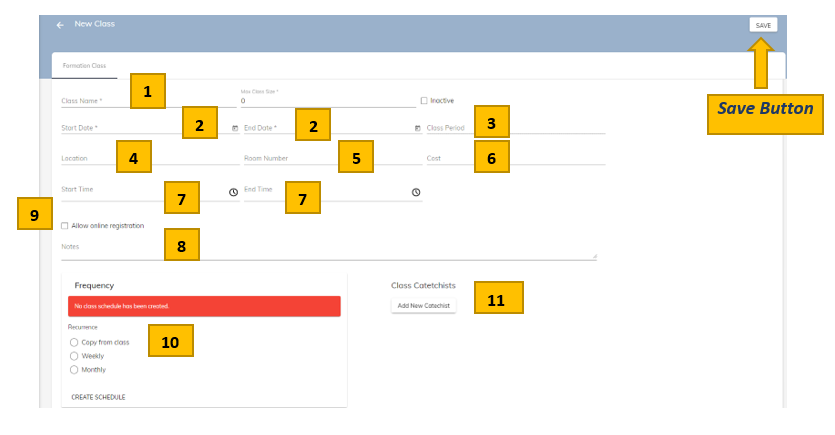 - If the FREQUENCY section was filled out when the class was created the Class Schedule will automatically be generated for you