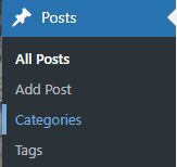 1. Once logged in, hover over Posts in the menu on the left-hand side of the Dashboard and select Categories.