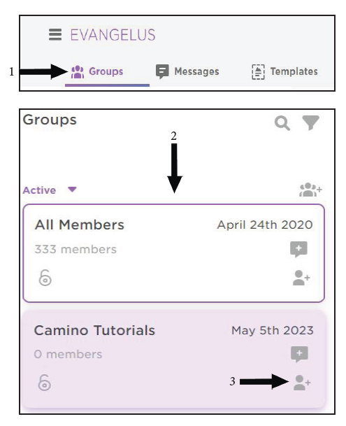 - Click on Add Member for the group you want to add to (in this case we are adding to “Camino tutorials”).