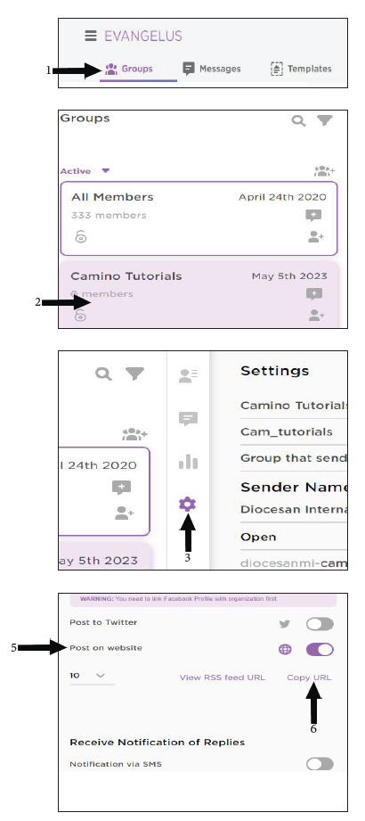 You will need to have a RSS feed module on your website where you want the Evangelus messages to post.
