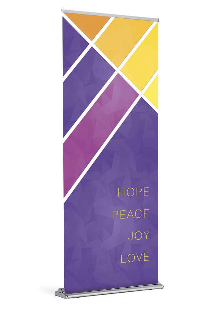 This banner is approximately 84″ tall. It is printed on durable, high quality polypropylene media with archival inks.