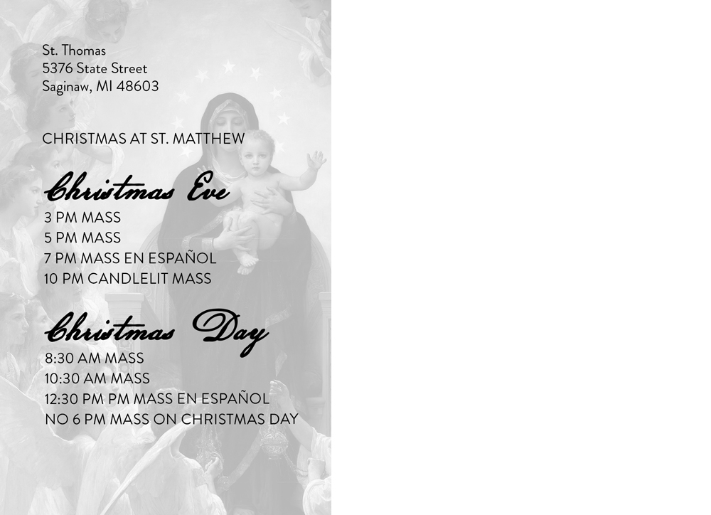 Customize Your Message This is a great way to promote the special Christmas schedule or message from Father on the back. Limited font options.