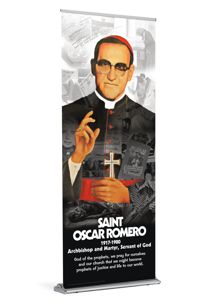 Óscar Arnulfo Romero y Galdámez (15 August 1917 – 24 March 1980) was a prelate of the Catholic Church in El Salvador having served as Auxiliary Bishop of the Archdiocese of San Salvador, Bishop of Tambeae, Bishop of Santiago de María, and as the fourth Archbishop of San Salvador. As archbishop, Romero spoke out against social injustice and violence amid the escalating conflict between the military government and left-wing insurgents that led to the Salvadoran Civil War. In 1980, Romero was shot by an assassin while celebrating Mass. In 1997, Pope John Paul II bestowed upon Romero the title of Servant of God, and a cause for his beatification was opened by the church. The cause stalled, but was reopened by Pope Benedict XVI in 2012. Romero was declared a martyr by Pope Francis on 3 February 2015, paving the way for his beatification on 23 May 2015. During Romero’s beatification, Pope Francis declared that his “ministry was distinguished by his particular attention to the most poor and marginalized.” Pope Francis canonized Romero on 14 October 2018.