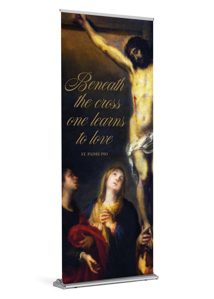 This Lent banner is approximately 84″ tall. It is printed on durable, high quality paper with water resistant inks.