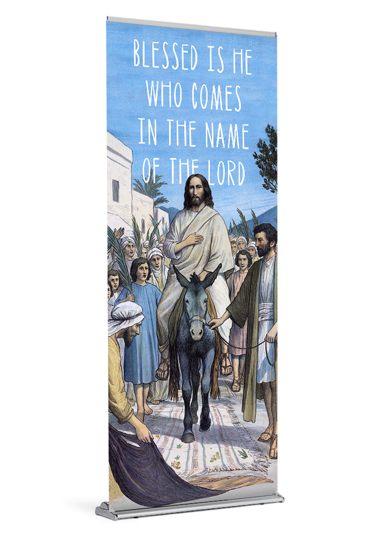 This Lent banner is approximately 84″ tall. It is printed on durable, high quality paper with water resistant inks.
