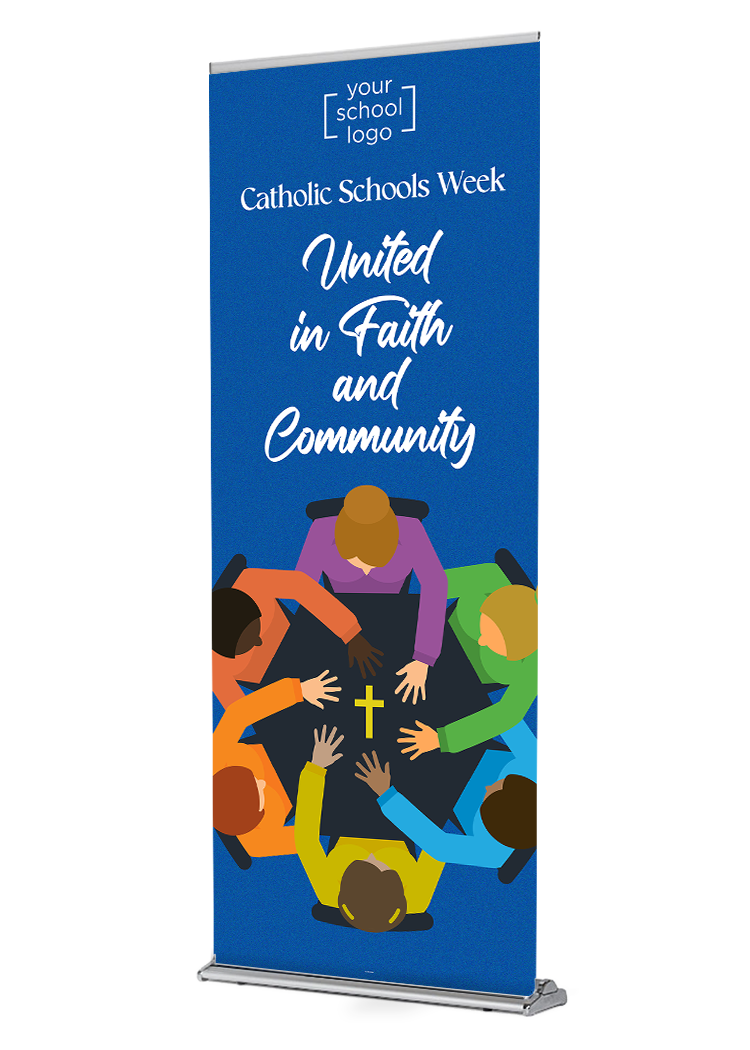 This Catholic Schools Week banner is approximately 84″ tall. It is printed on durable, polypropylene media with archival inks.