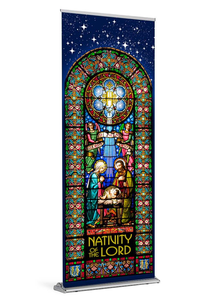 Peace. Love. Joy. Hope. The gifts that the Infant Jesus brings to us and to the whole world are the true gifts of Christmas. Your faith community will certainly appreciate this inspirational banner.