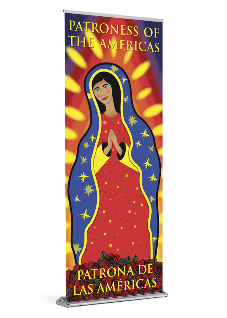 This banner is approximately 84″ tall. It is printed on durable, polypropylene media with archival inks.