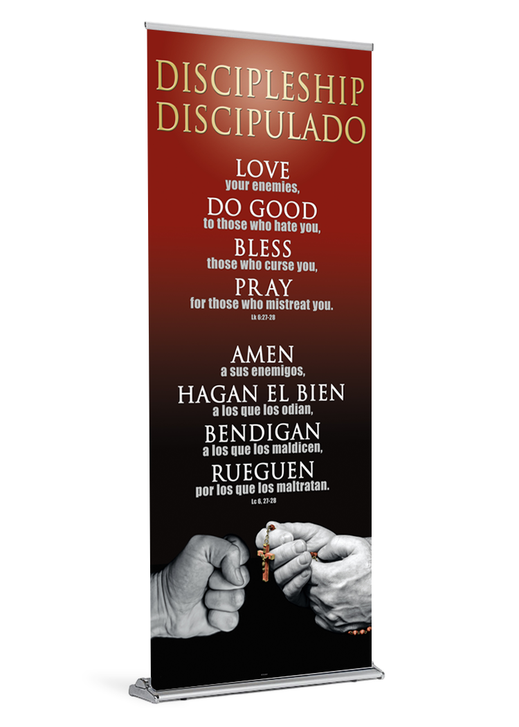 This banner is approximately 84″ tall. It is printed on durable, high quality polypropylene media with archival inks.