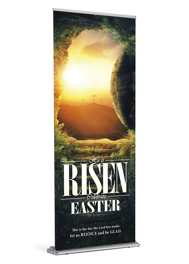 This Easter banner is approximately 84″ tall. It is printed on durable, high quality paper with water resistant inks.