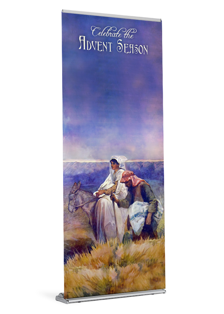 This banner is approximately 84″ tall. It is printed on durable, high quality polypropylene media with archival inks.