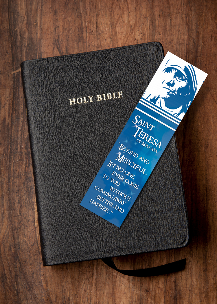 This bookmark, which highlights the simple blue and white habits of the Sisters of Charity, reminds us in a striking way of how we can be Christ to others.