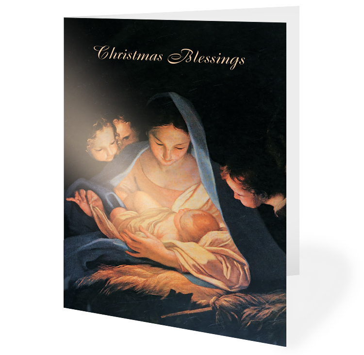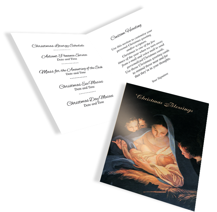 Personalize your Christmas card by adding custom text to both sides of the Interior. This is a great way to promote the special Christmas schedule on the left and custom prayer or message from Father on the right.