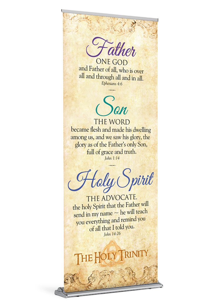 Every parish should have a banner that highlights the doctrine of the Holy Trinity. This lovely art will be at home in a church with either modern decor or a more traditional look.