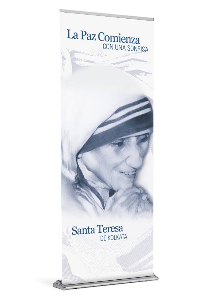 This banner captures the simplicity that was at the heart of Mother Teresa’s life and mission. “If we have no peace,” she said, “it is because we have forgotten that we belong to each other.” Peace is something our world sorely needs, and this banner will remind your faith community to pray for peace through the intercession of Mother Teresa.