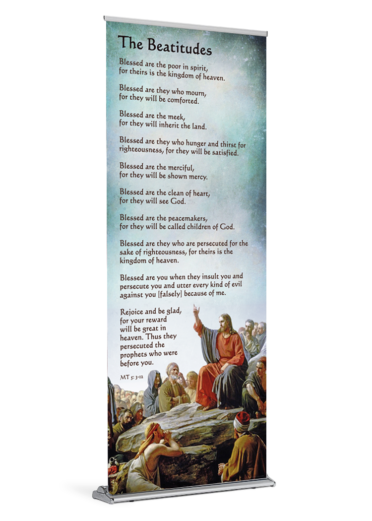 This banner is approximately 84″ tall. It is printed on durable, high quality paper with water resistant inks.