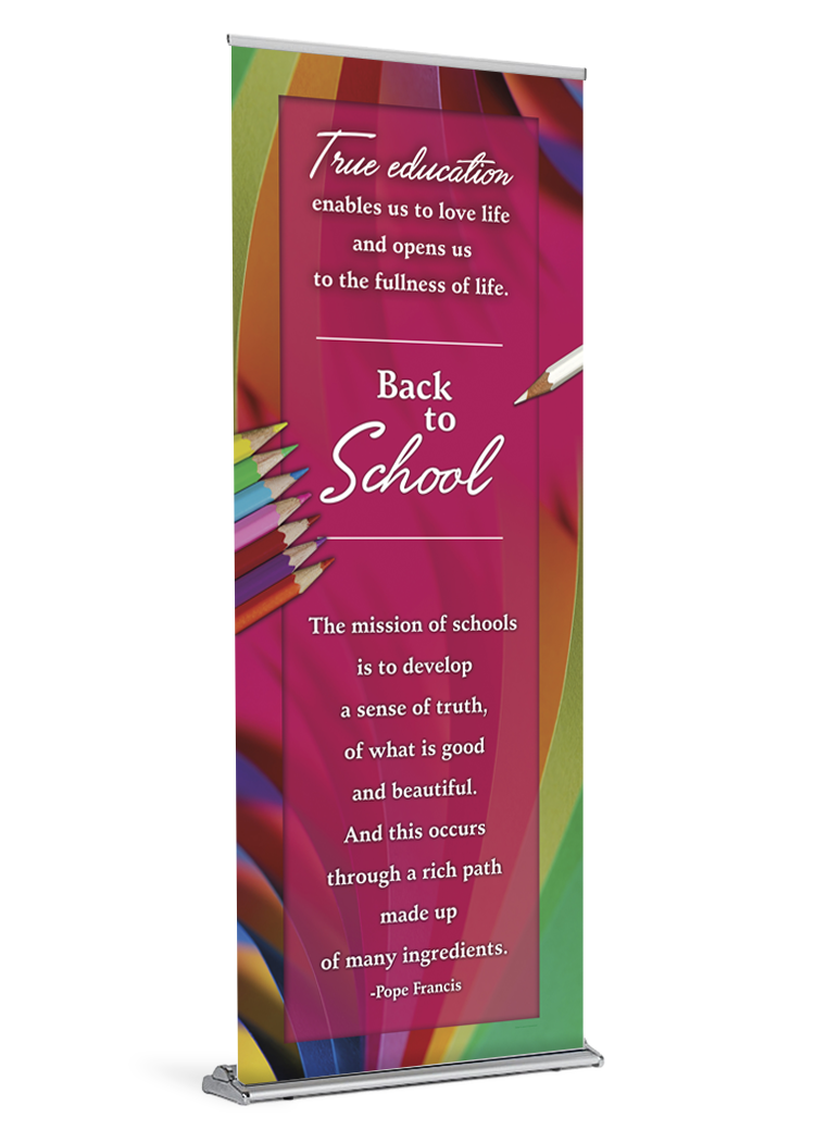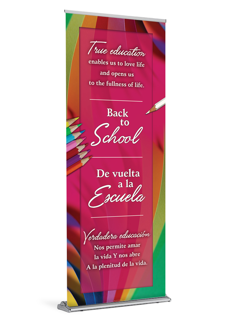 This Back to School banner is approximately 84″ tall. All banners are printed on durable, high quality paper with water resistant inks.