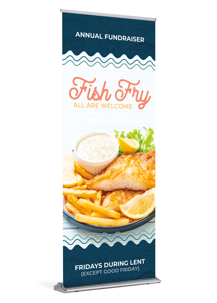 This banner will surely grab the attention of parishioners and others during the Lenten season. Durable and nicely-designed, this banner will serve your parish well.